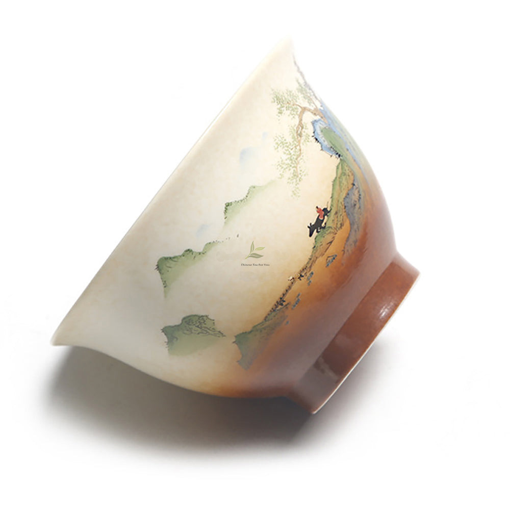 This exquisite Gaiwan showcases the venerable art of Chinese Gongbi painting. Originating in the Tang dynasty, Gongbi meticulously depicts nature and human subjects with unparalleled realism.