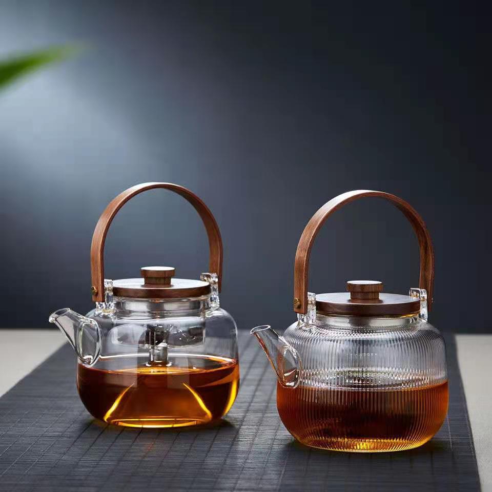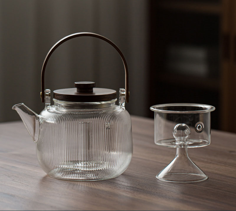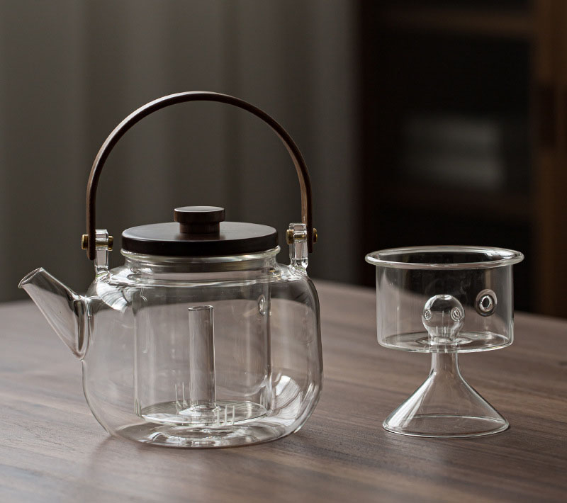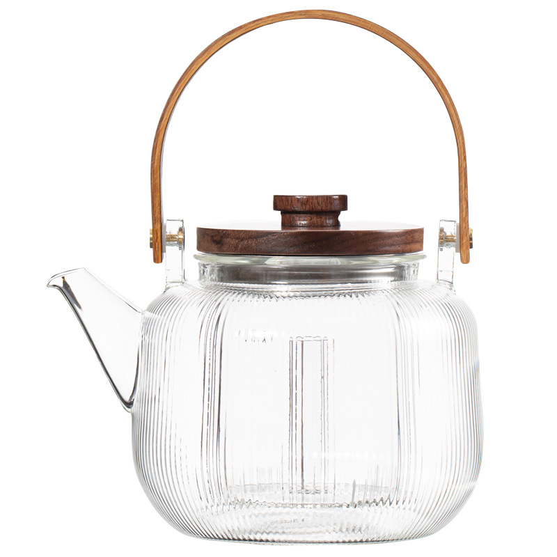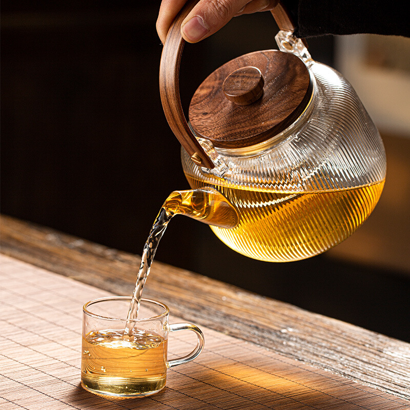 Glass Tea Pot with Loop Handle and Walnut Lid – Perfect for Tea Lovers