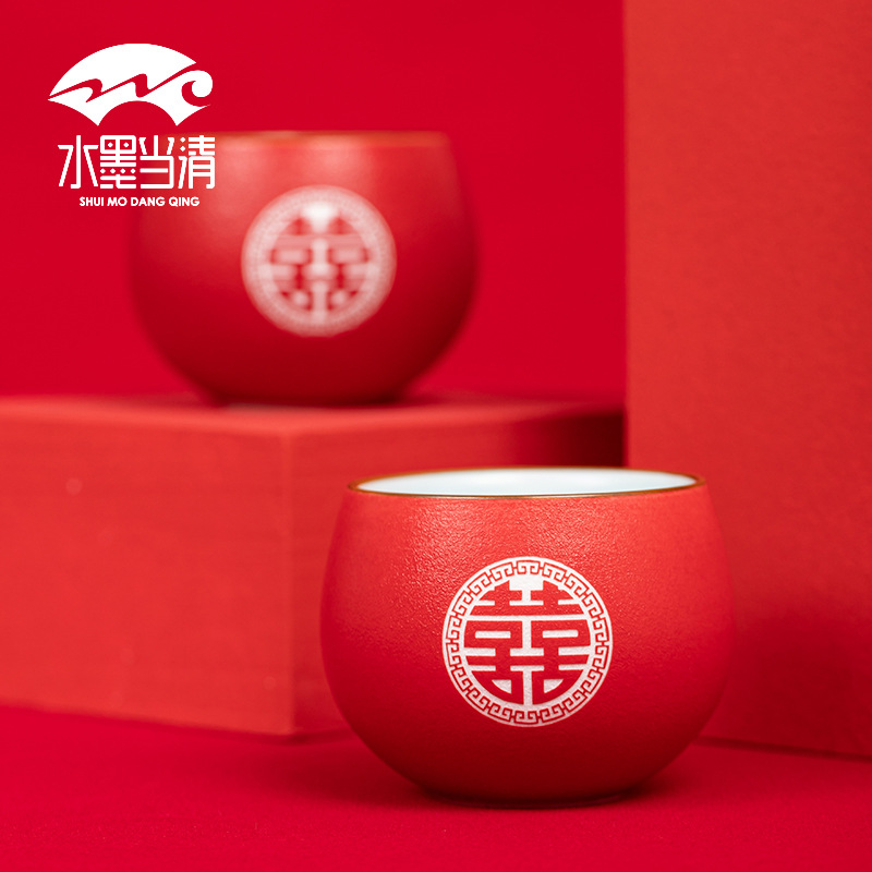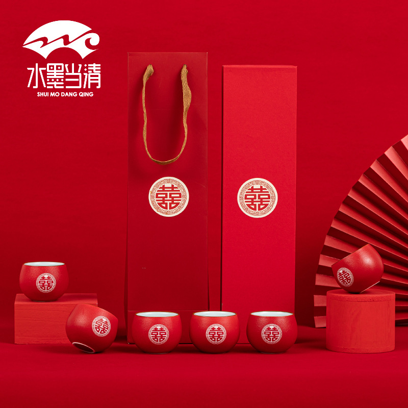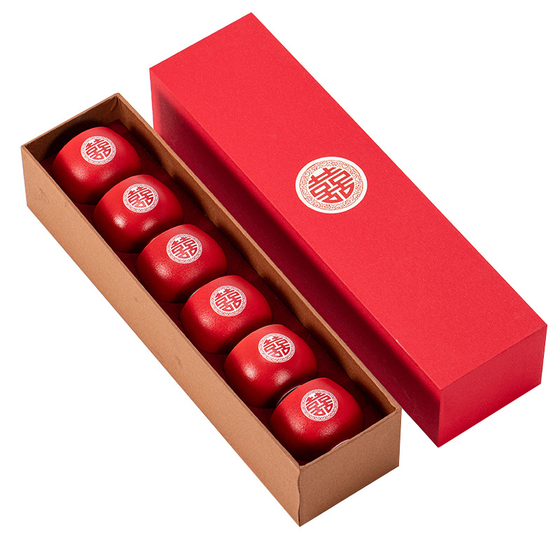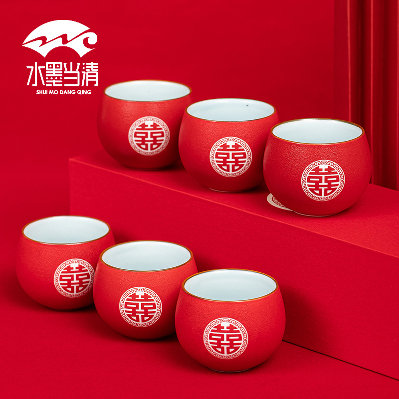 Chinese Wedding Red Tea Cup Set – 6 Piece Ceramic Household Collection