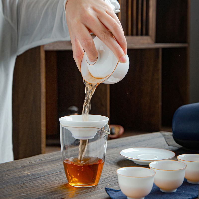 The tea leaves brewed with white porcelain tea set can be more clearly felt, the aroma of the tea soup