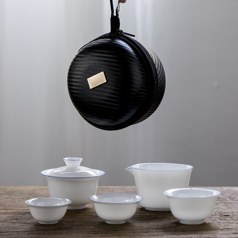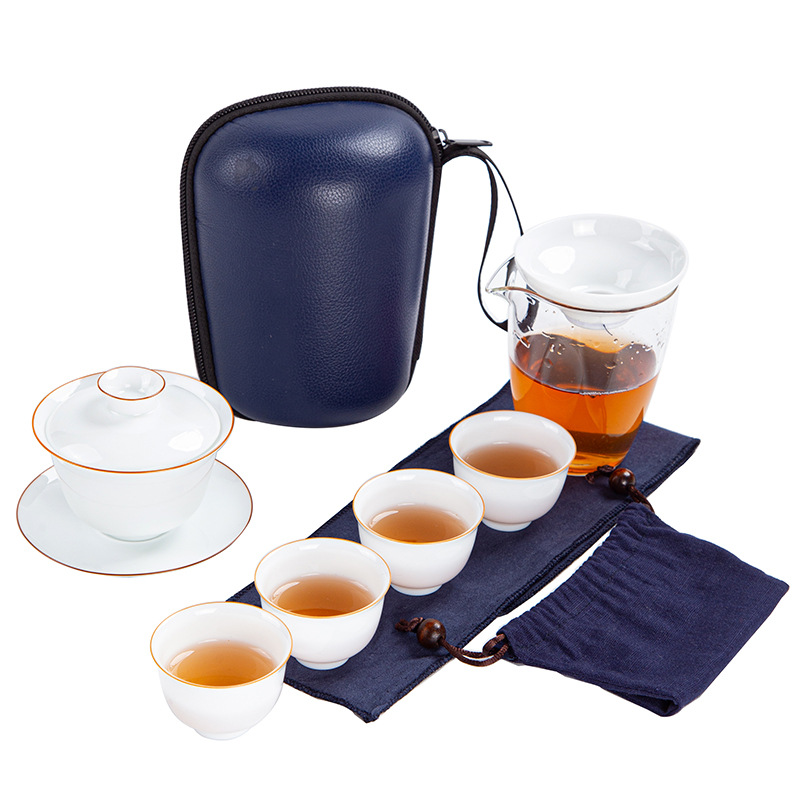 Chinese Travel Tea Set – Handmade Violet Gold and White Design