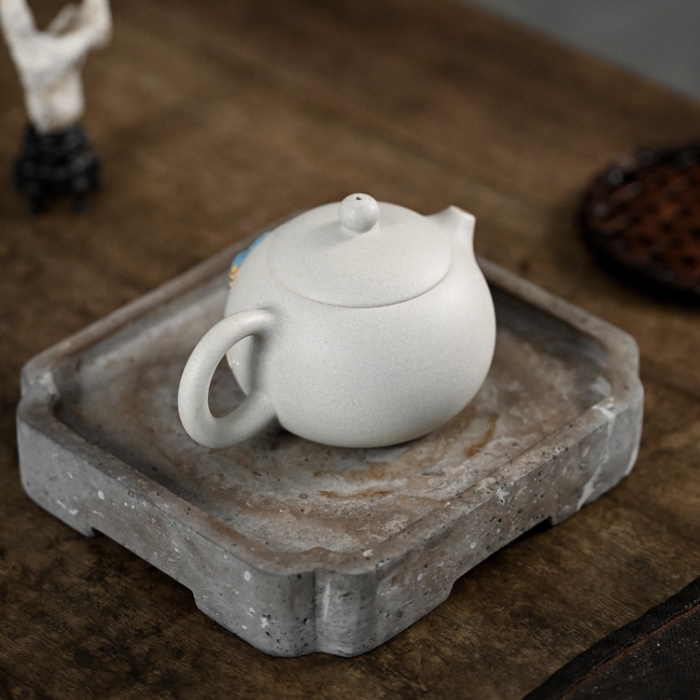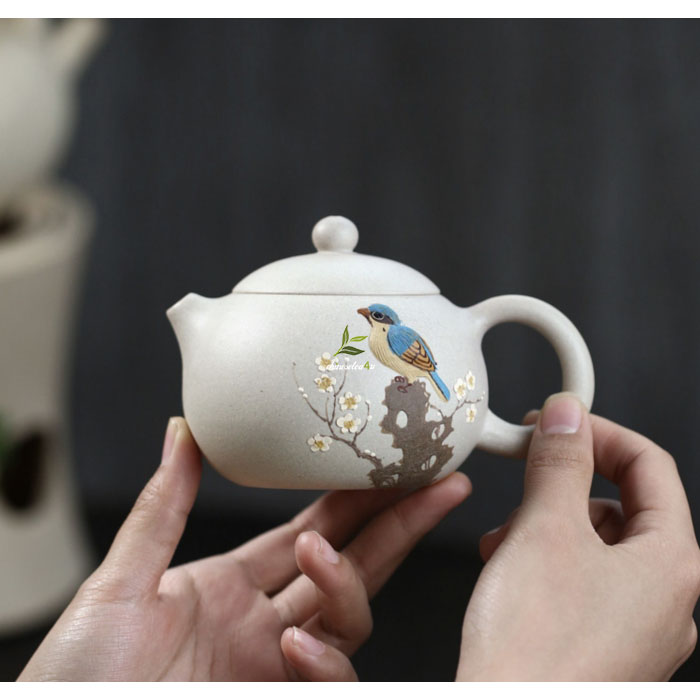 In the traditional realm of Yixing teapots, our exquisite white jade duan ni clay teapot stands out as a captivating masterpiece. Embracing innovation, this teapot defies conventions with its elegant Xishi style body, adorned with an enchanting zisha clay painting.