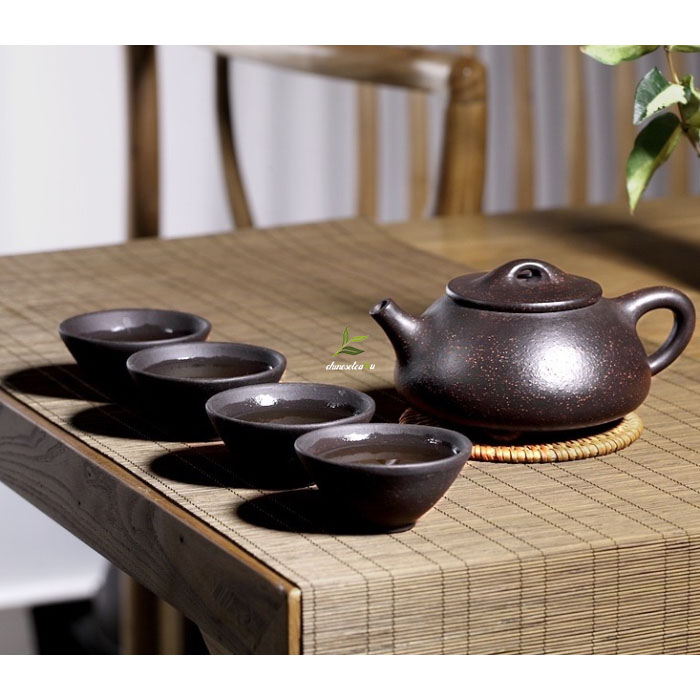 Yixing Clay Teapot Set – 220ml Hei Jin Sha Teapot with 4 Cups