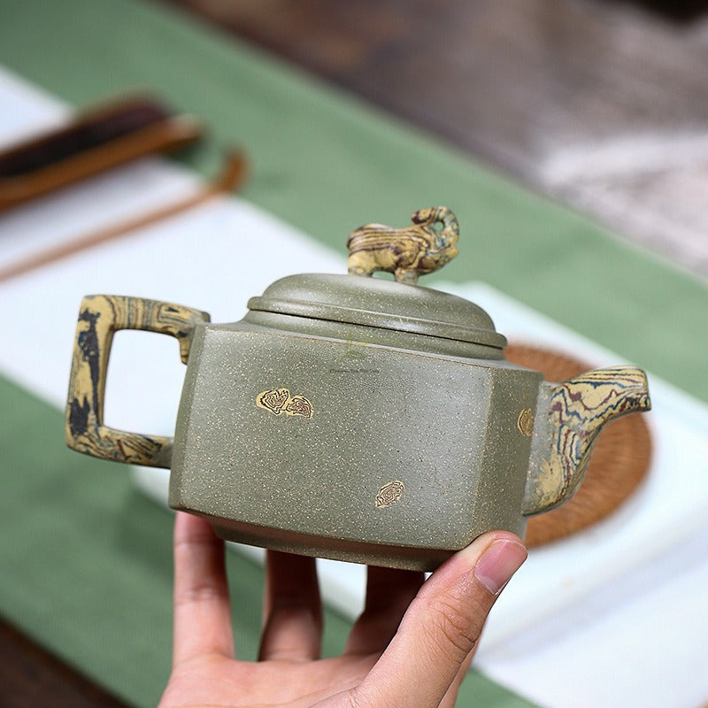 Indulge in the quintessential tea experience with our exquisite Yixing Green Clay Elephant Teapot. Handcrafted from raw ore purple clay sourced from the renowned Huanglongshan mountains, this teapot boasts exceptional qualities that distinguish it as a must-have for tea enthusiasts.