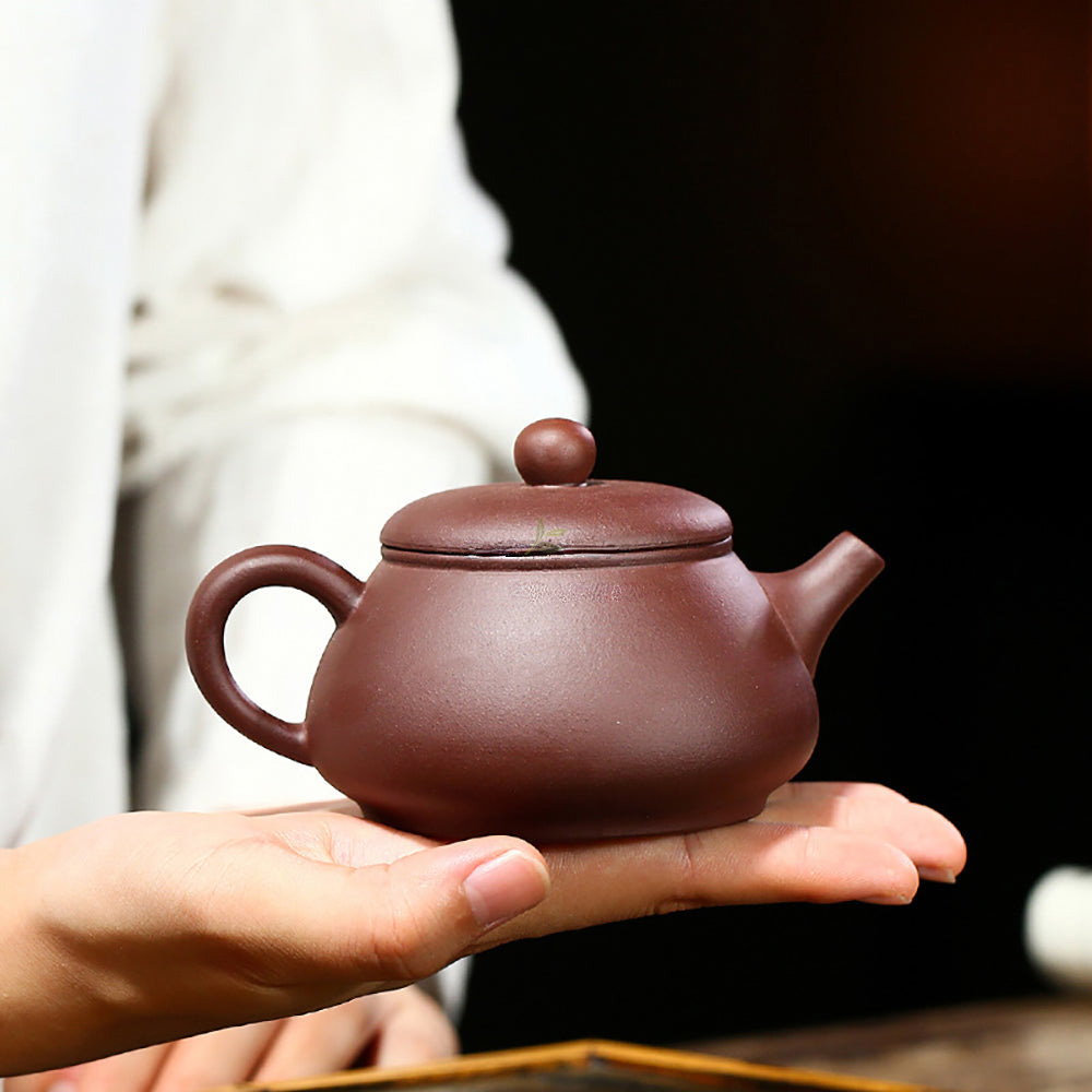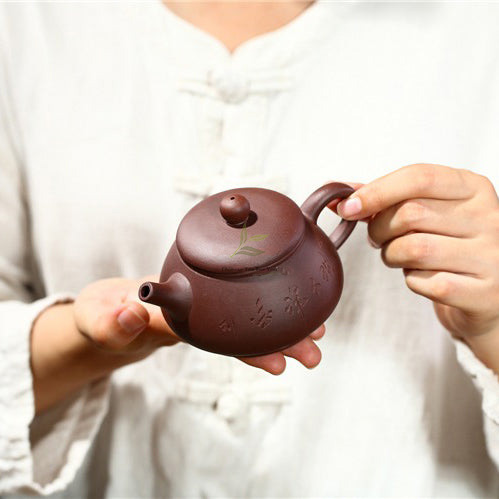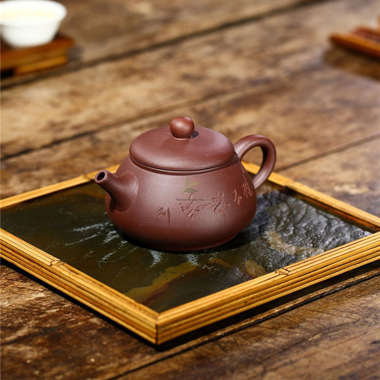 Indulge in the artistry of ancient China with this Purple Clay Carved Minimalist Teapot, a testament to the harmonious union of functionality and beauty.