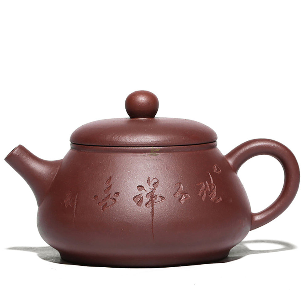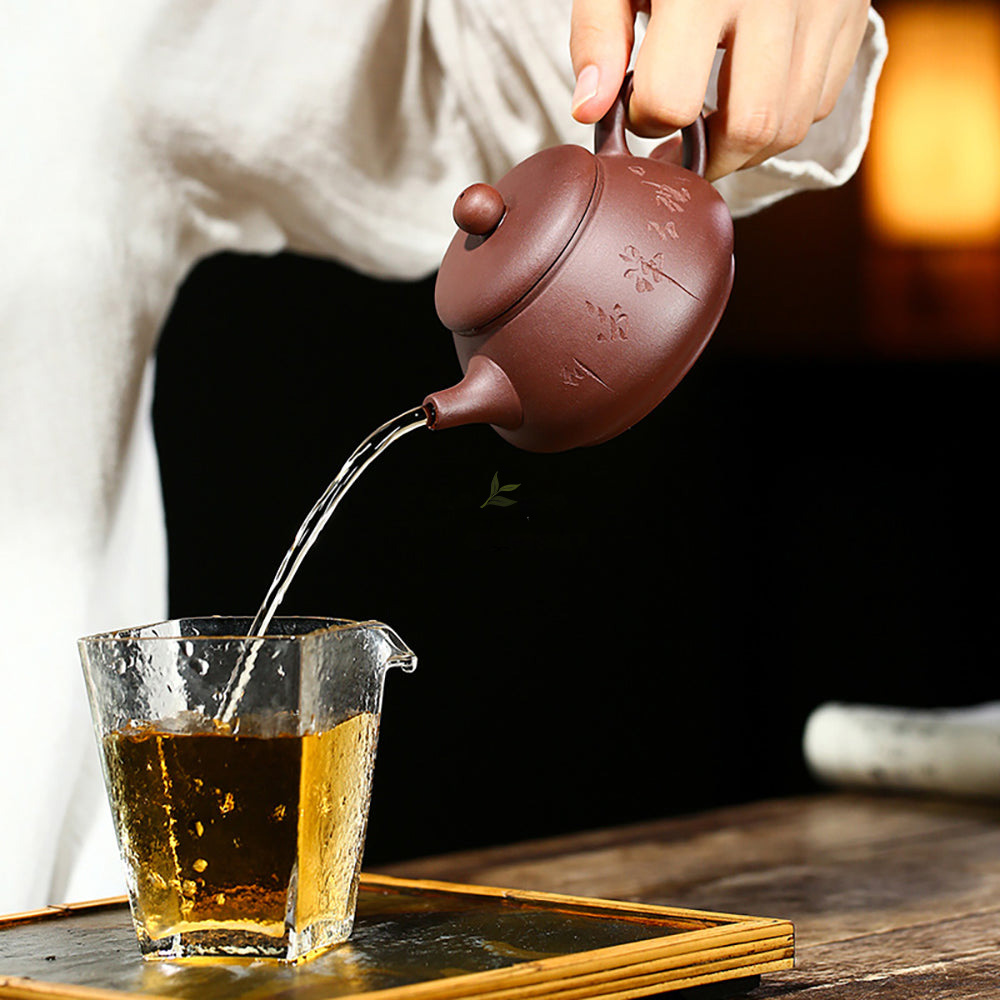 Yixing Handcrafted Purple Clay Teapot with Carved Design