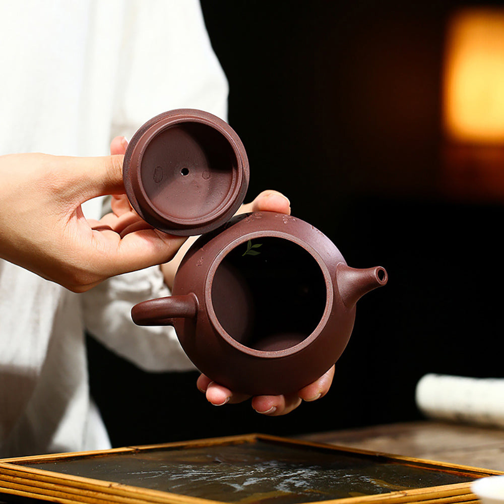 The Quintessence of Tea Ceremony: Purple Clay Carved Minimalist Teapot
