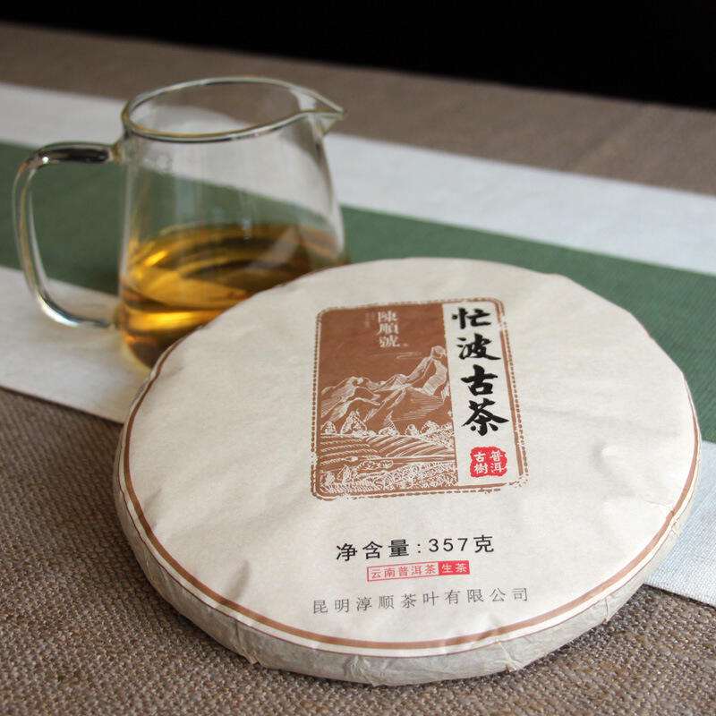 Mang Bo ancient tea is processed by traditional tea-making method. It is moderate in tightness, round and generous in cake shape and strong and compact in strips.